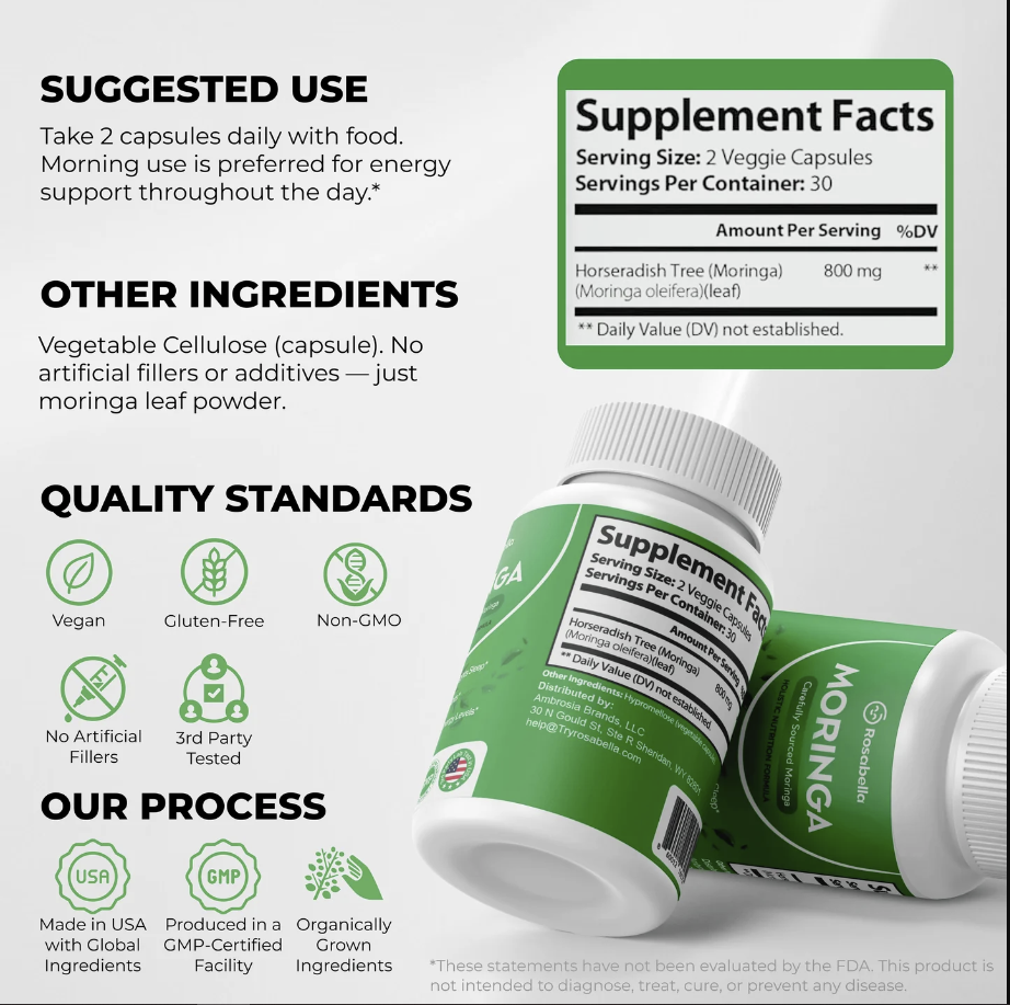 While Rosabella Moringa is formulated with natural ingredients and is generally safe, it's always best to consult with your healthcare provider before starting any new supplement, especially if you are currently taking other medications.